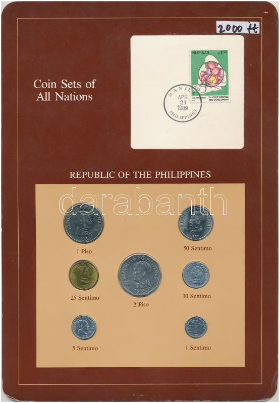 Philippines 1985-1988. 1 Sentimo - 1 Piso 6 different, coin set on cardboard with stamp C:UNC-XF