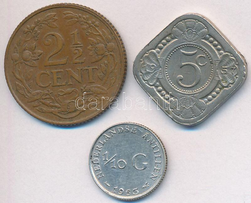 Holland Antillák 1957. 5c + 1959. 2-1/2c + 1963. 1/10G Ag T:2