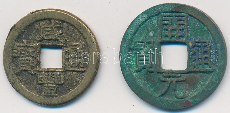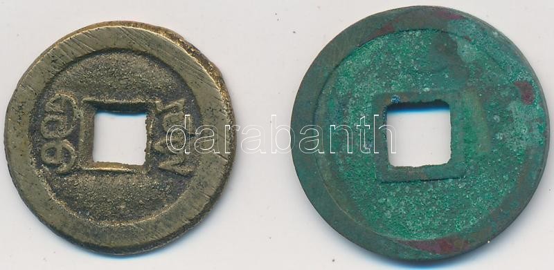 Kína Császárság / Tang Dinasztia 618-907. 1C Br "Kai-Yuan Tung-Pao" (4.68g) + Chi'ng dinasztia / Hsien-Feng 1851-1861. 1C Br "Hsien-feng T'ung-Pao" (4g) T:2-