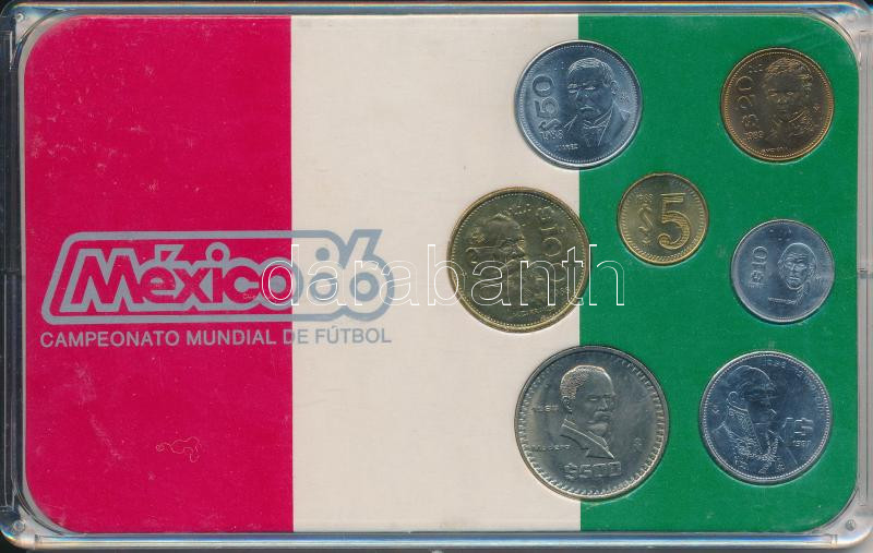 Description: Mexikó 1989. 5P-500P 7db klf érmés forgalmi sor az 1986-os Labdarúgó VB emlékére, tokban T:1,1-
