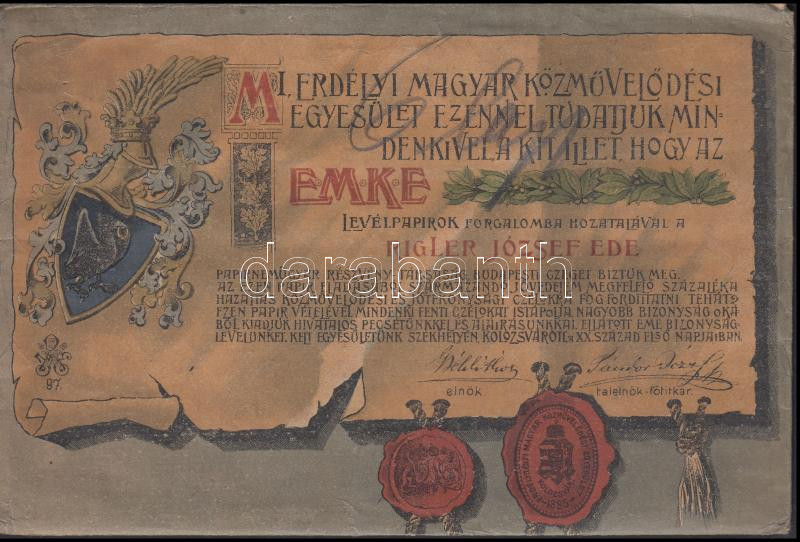 cca 1900 Az EMKE (Erdélyi Magyar közművelődési Egyesület) díszes levél...
