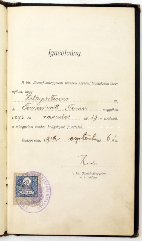 1912 Schuller Alajos és más oktatók aláírásai vegyészmérnöki egyetemi ...