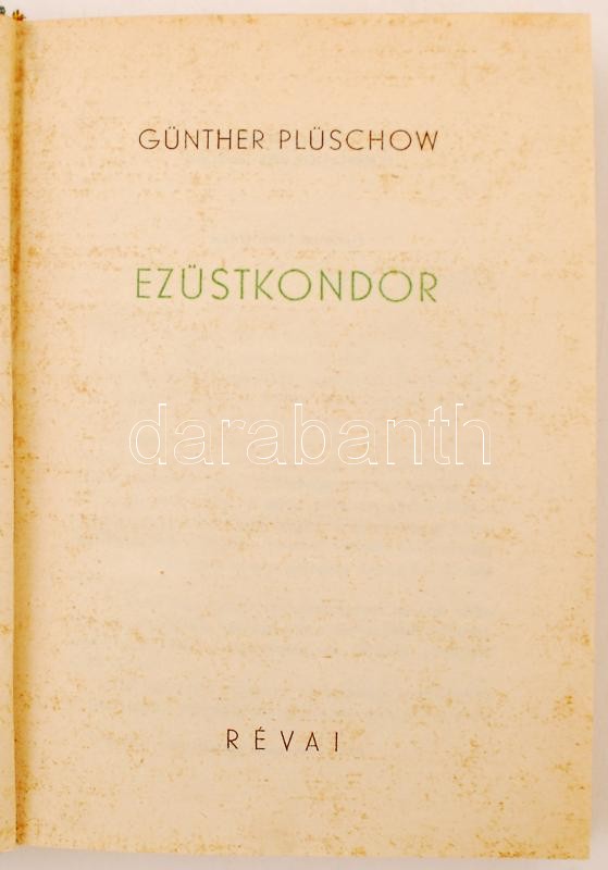 Günter Plüschow: Ezüstkondor. Harc a levegőért. Révai Budapest. Műegye... https://www.darabanth.com/en/225-Online-auction/225.0/Other-collectibles/Books-Military~8/Gunter-Pluschow-Ezustkondor-Harc-a-levegoert-Revai-Budapest-Muegyetemi-Sportrepulo-Egye~II986451