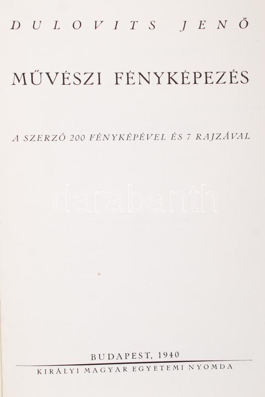 Dulovits Jenő: Művészeti fényképezés. A szerző 200 fényképével és 7 ra... https://www.darabanth.com/en/225-Online-auction/225.0/Other-collectibles/Books-Other-rarities~22/Dulovits-Jeno-Muveszeti-fenykepezes-A-szerzo-200-fenykepevel-es-7-rajzaval-Bp-1940-~II952739