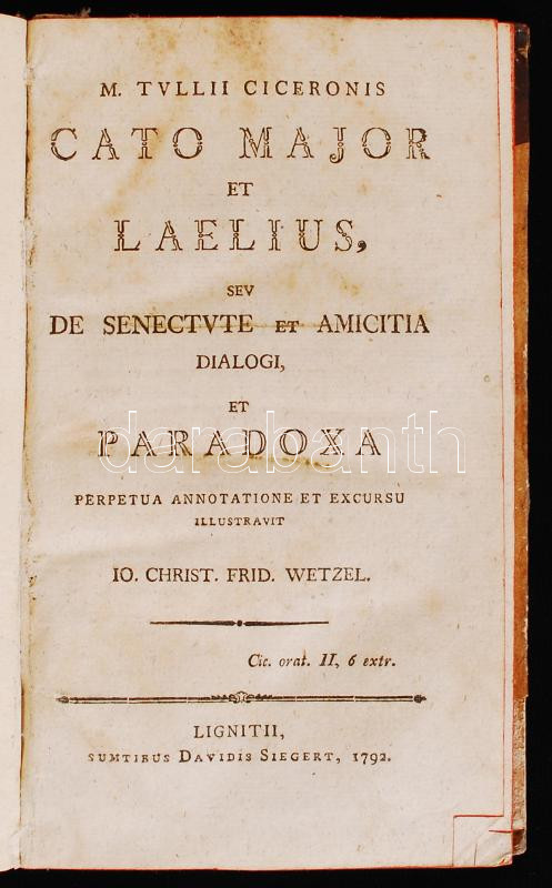 Marci Tulii Ciceronis Cato Maior et Laelius seu de senectute et amicit... https://www.darabanth.com/en/225-Online-auction/225.0/Other-collectibles/Books-Other-rarities~22/Marci-Tulii-Ciceronis-Cato-Maior-et-Laelius-seu-de-senectute-et-amicitia-dialogi-et-Paradoxa-Lignit~II943286