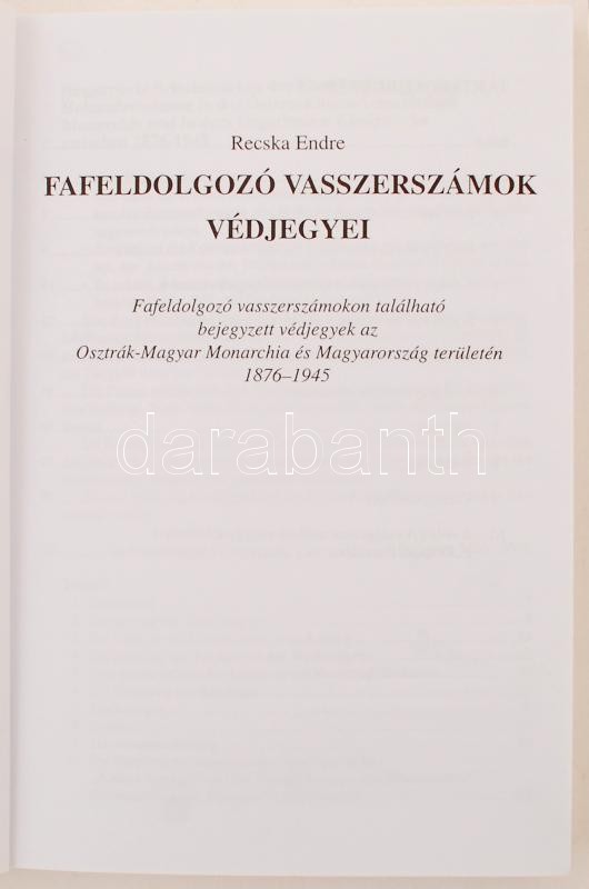 Recska Endre: Fafeldolgozó vasszerszámok védjegyei. Bp., 2007. 358p. T...