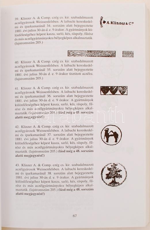 Recska Endre: Fafeldolgozó vasszerszámok védjegyei. Bp., 2007. 358p. Több mint 1000 jellel