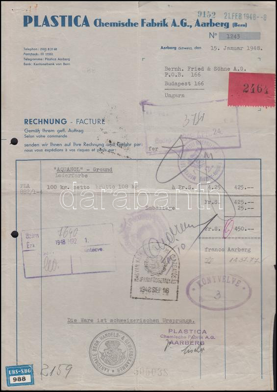 https://www.darabanth.com/en/225-Online-auction/225.0/Other-collectibles/Document-Stamps~36/1948-Vegyipari-szamla-Bern-Kantonbol-okmanybelyegekkel~II981576