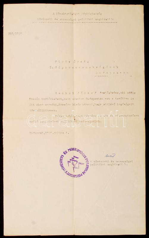 1919 Tanácsköztársasági okmány: a Közoktatásügyi Népbiztosság levele a... https://www.darabanth.com/en/225-Online-auction/225.0/Other-collectibles/Documents~37/1919-Tanacskoztarsasagi-okmany-a-Kozoktatasugyi-Nepbiztossag-levele-a-Voros-Orseg-re~II988250