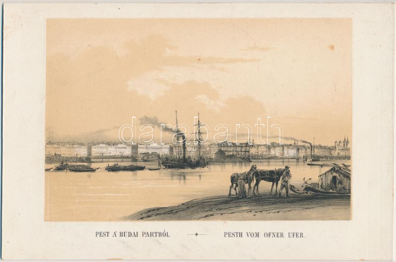 R. Alt (1812-1905): Pest A' Budai Partról. Litho kartonra kasÃroz...