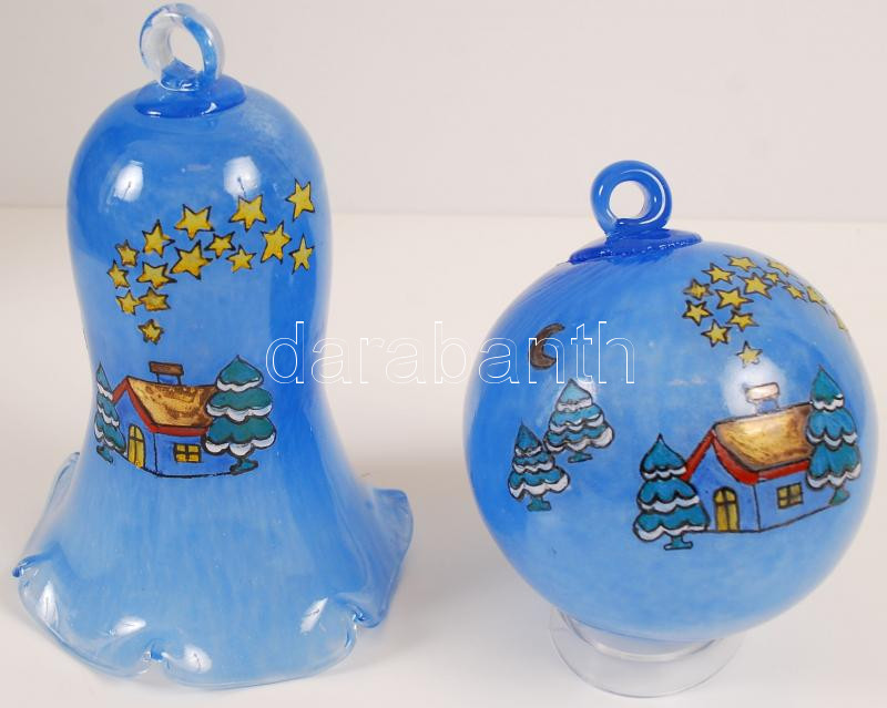 Karácsonyi üveg díszek (2db), eredeti dobozában, h:14 és 16 cm