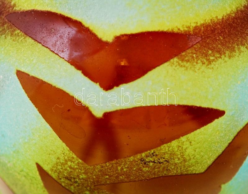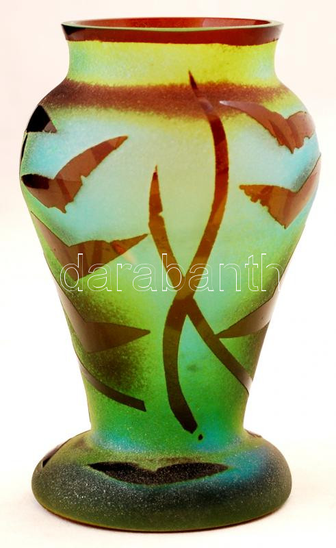 Kisméretű üveg váza, maratott, apró lekopásokkal, d: 5,5 cm, m: 13 cm