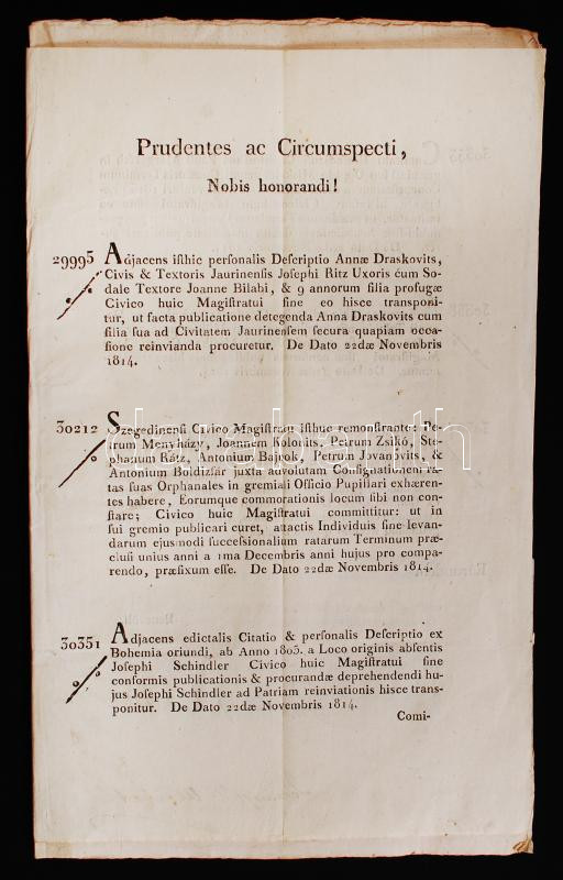 1814-1815 Körözvények latin és német nyelven, az egyes esetek, illetve... https://www.darabanth.com/en/225-Online-auction/225.0/Other-collectibles/Historical-documents-manuscripts~38/1814-1815-Korozvenyek-latin-es-nemet-nyelven-az-egyes-esetek-illetve-a-korozott-szemelyek~II953081