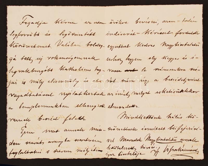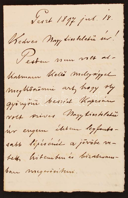 1897 ifj. Tisza Kálmán gróf (1867-1947) saját kézzel írt levele Szél Kálmán nagyszalontai esperesnek, amelyben megkéri, hogy küldje el esketési beszédét, amelyet a Keglevich Ilona grófnővel kötött házasság alkalmával mondott el