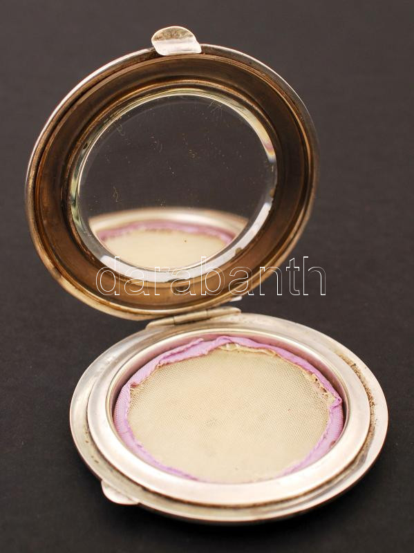 Díszes, ezüst púdertartó , jelzett, BM monogrammal br.: 50 gr, d:6,5c...
