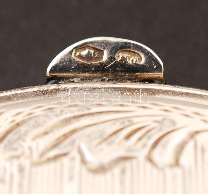 Díszes, ezüst púdertartó , jelzett, BM monogrammal br.: 50 gr, d:6,5cm
