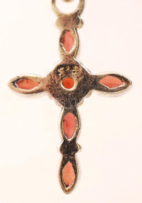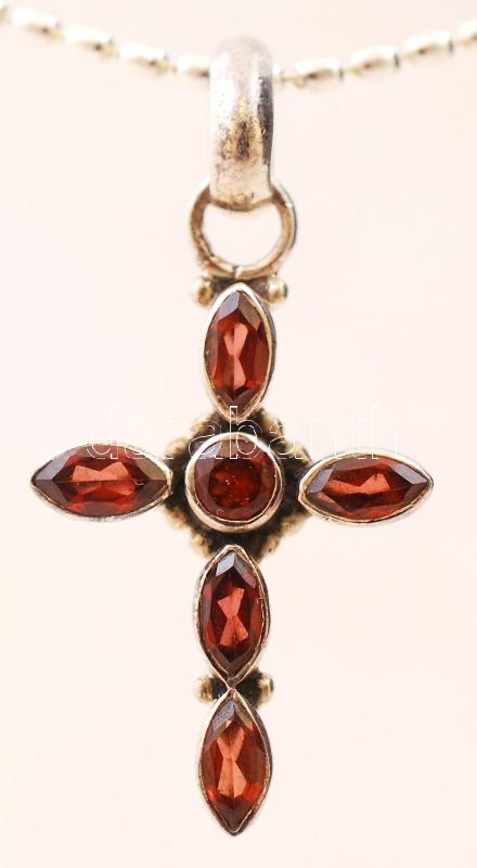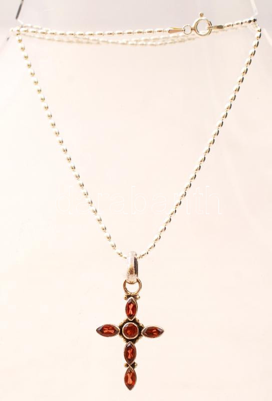 Féldrágakövekkel kirakott ezüst(Ag) kereszt ezüst(Ag) láncon, jelzett,...