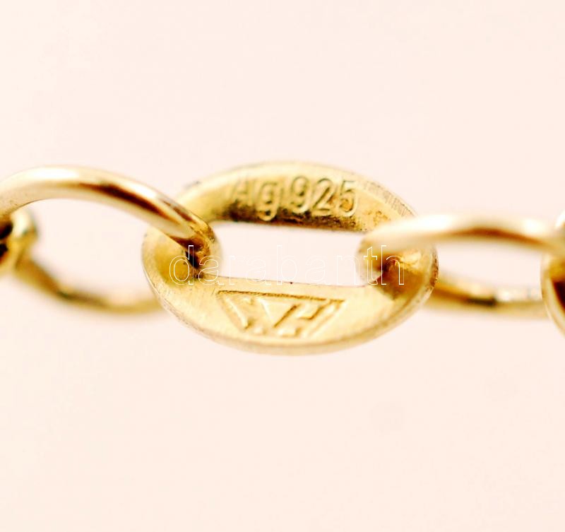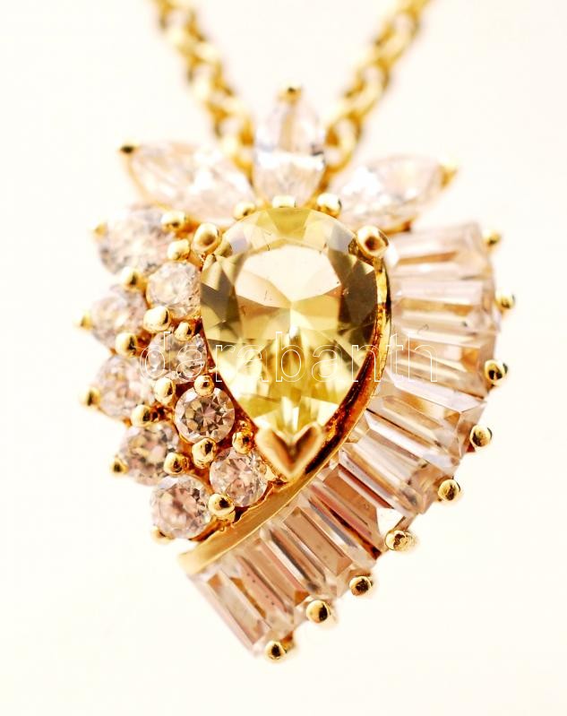Tűzaranyozott citrin díszítésű ezüst(Ag) medál láncon, jelzett, 7,8 g