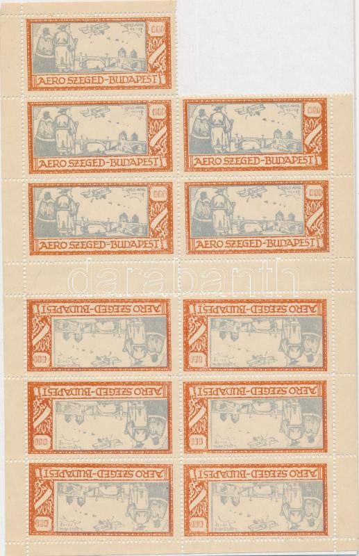 1925/2/b Szeged-Budapest Légiposta emlékív értékjelzés nélküli nyomdai íve, melyről 1 bélyeget letéptek