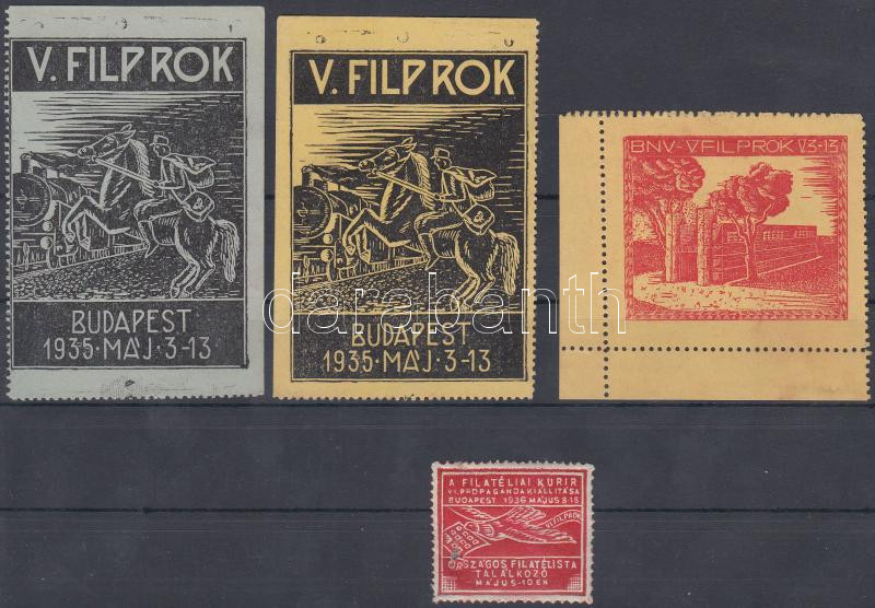1935 V. Filprok 3 db levélzáró + 1936 Filatéliai Kurír levélzáró (sérült)