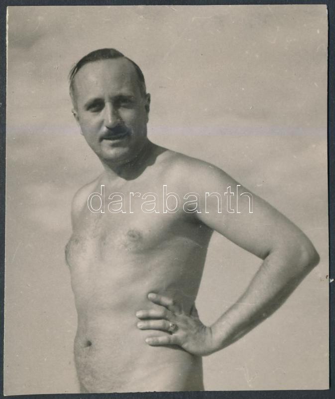 cca 1937 Dr. Csörgeő Tibor (1896-1968) fotóművészről készült félmeztel...