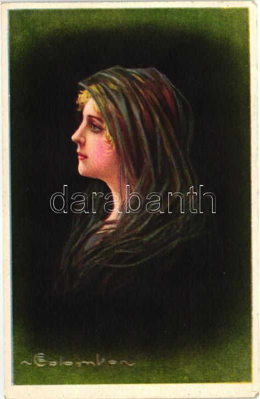 Italian art postcard, lady with scarf s: Colombo (fa)