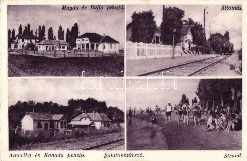 Balatonszárszó, Magda és Balla és Amerikai és Kanada penzió, vasútállomás, strand, fürdőzők