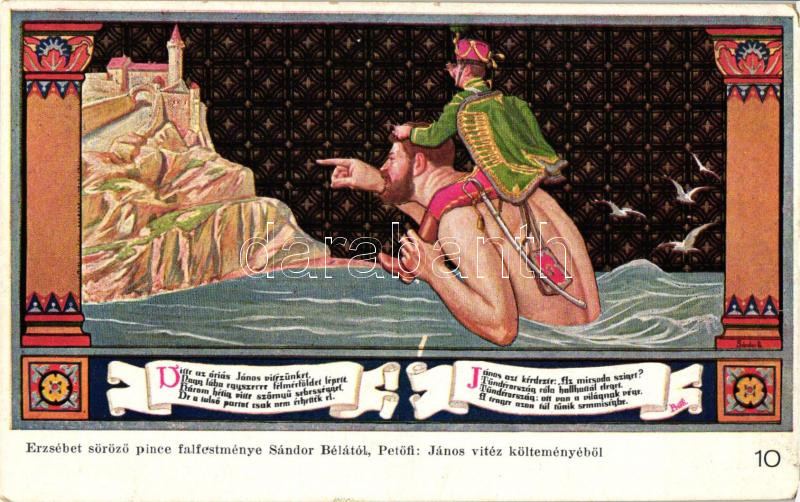 Budapest V. Erzsébet Királyné Szálló étterem és söröző pince, Sándor Béla falfestménye Petőfi János vitézéből 10.