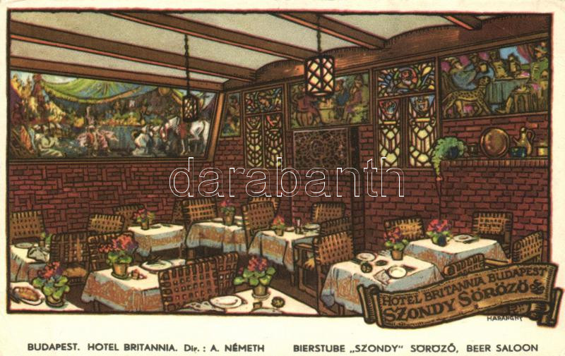 Budapest VI. Hotel Britannia, Szondy söröző s: Haranghy J. (EK)