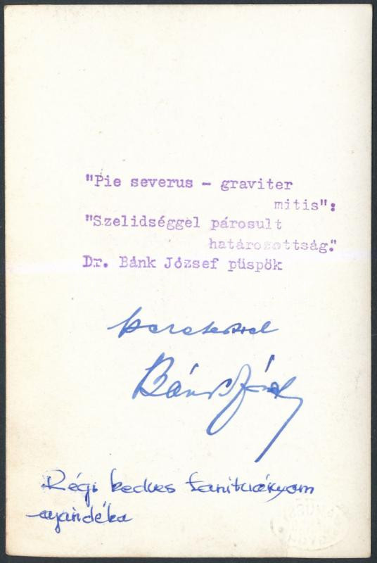 cca 1940 Dr. Bánk József püspök aláírt fotója