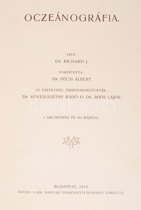 Richard, J.: Oczeánográfia Ford.: Pécsi Albert Bp. 1912. Kir. M. Termt... https://www.darabanth.com/en/226-Online-auction/226.0/Other-collectibles/Books-Science-and-technology~400013/Richard-J-Oczeanografia-Ford-Pecsi-Albert-Bp-1912-Kir-M-Termtud-Tars-576-p-344-kepp~II909139