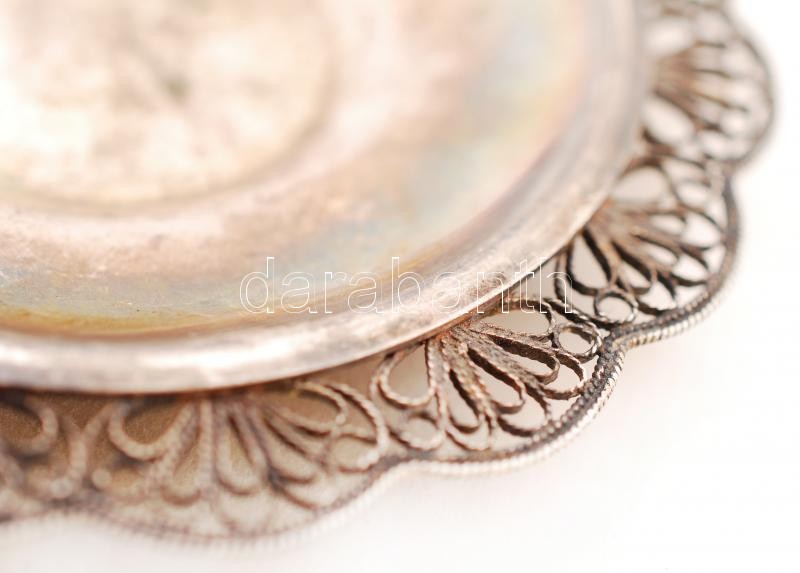 Díszes orosz ezüstözött alpakka kistálka, jelzett, d: 10,5 cm