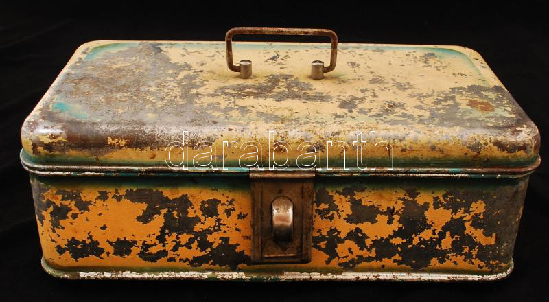 Nagyméretű régi fém doboz, viseltes állapotban, 37,5×20,5×14 cm
