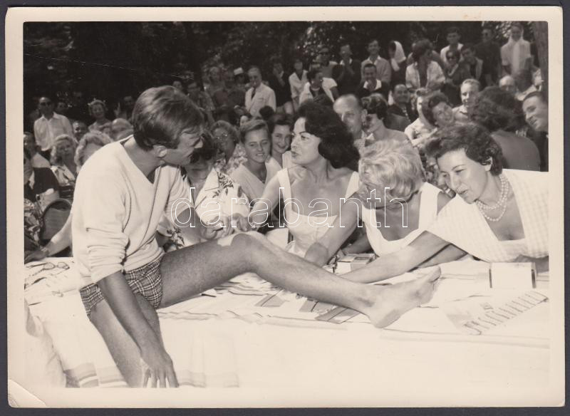 1959 Vidám jelenet a La Baule-i (Franciaország) Ker Causette vendéglőb... https://www.darabanth.com/en/226-Online-auction/226.0/Other-collectibles/Photo~400040/1959-Vidam-jelenet-a-La-Baule-i-Franciaorszag-Ker-Causette-vendegloben-hatoldalon-feliratozv~II1000231