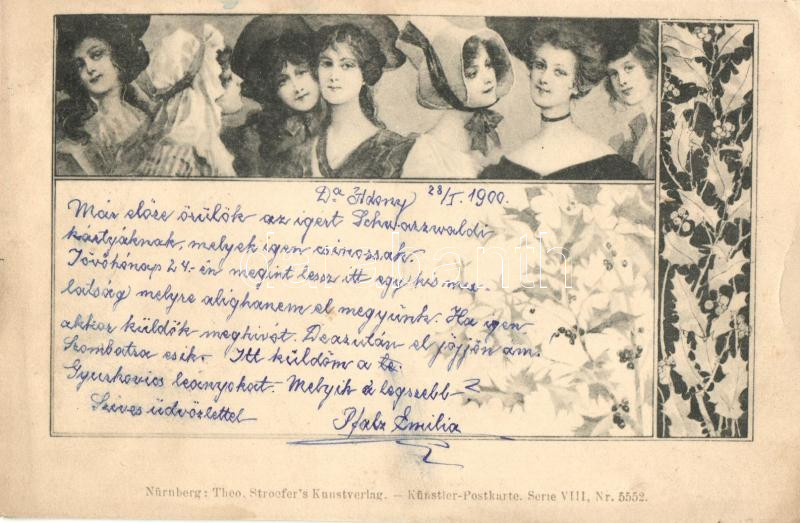Ladies, Art Nouveau, T.S.N. Künstlerpostkarte Serie VIII. Nr. 5552. (Rb)
