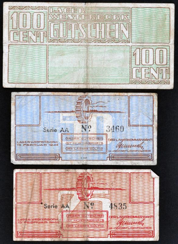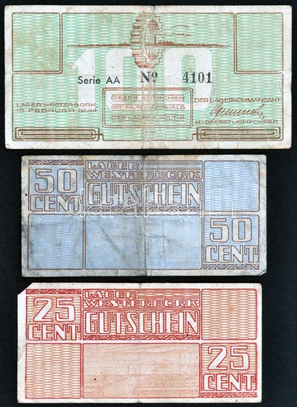 Hollandia / Westerbork átmeneti tábor 1944. 25c + 50c + 100c T:III