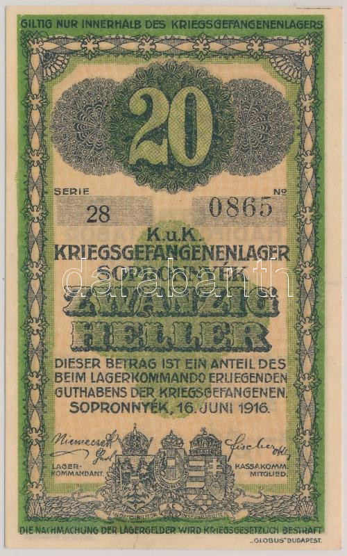 https://www.darabanth.com/en/227-Online-auction/227.0/Numismatics/Emergency-notes-and-coins-tokens~600007/Sopronnyekhadifogolytabor-1916-junius-16-20f-Trestauralt~II1005098