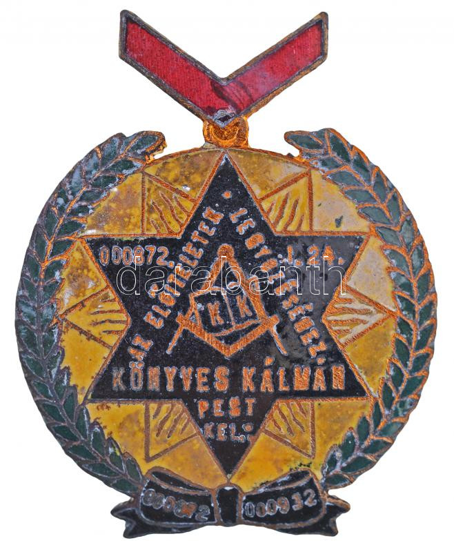 1932. "Könyves Kálmán - Az előítéletek legyőzéséhez" Szabadkőműves Páholy zománcozott gomblyukjelvénye T:2-,3