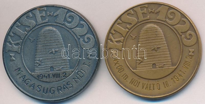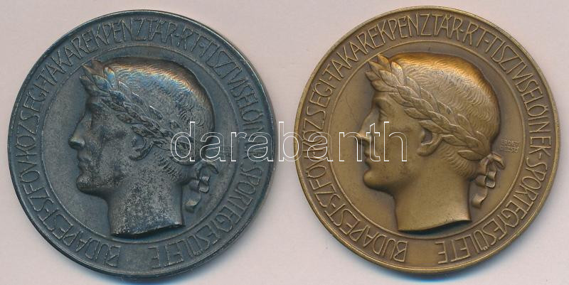 1941. "Budapest Székesfővárosi Községi Takarékpénztár Tisztviselőinek Sportegyesülete / KTSE 1929" 2xklf fém és Br díjérem. Szign.: Erdei Dezső (35mm) T:2