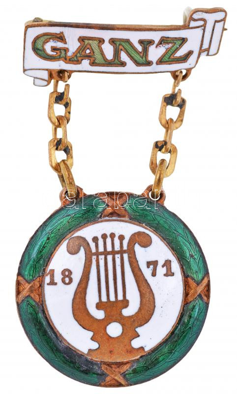 ~1920. "Ganz - 1871" zománcozott fém dalos jelvény "JEROUSCHEK BPEST SEMMELWEIS U. 7." gyártói jelzéssel T:2