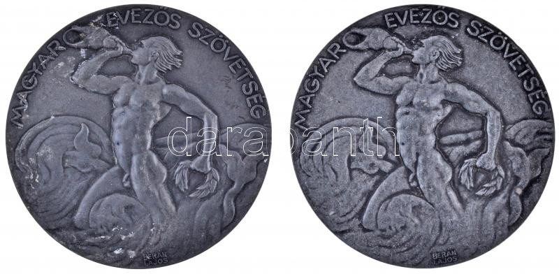 Description: Berán Lajos (1882-1943) 1943. "Magyar Evezős Szövetség / Női négypárevezős Budapest 1943.VI.6. I." + 1943. "Magyar Evezős Szövetség / Női pal. korm. négyes Győr 1943.06.20. I." fém díjérem (50mm) T:2