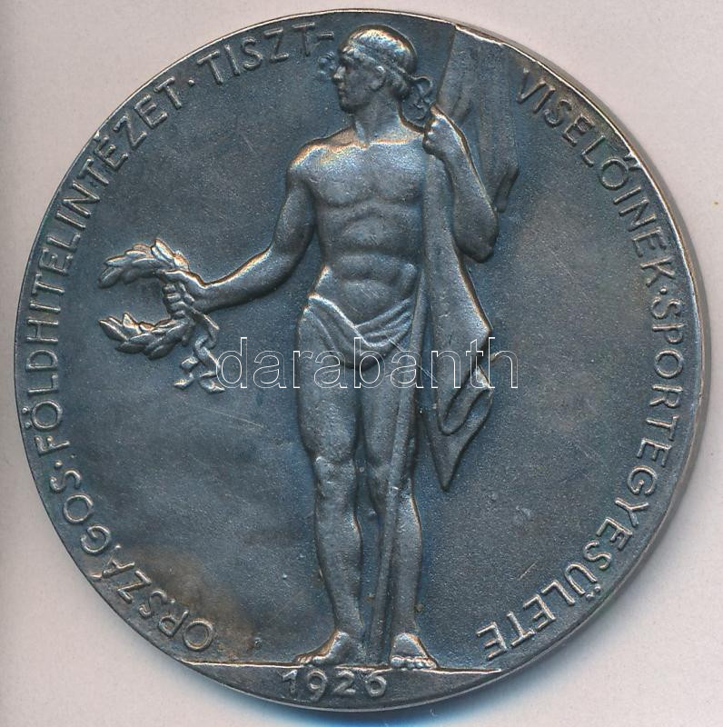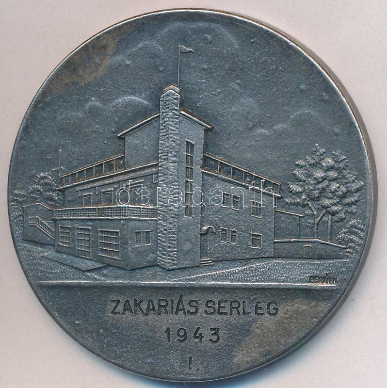 Berán Nándor (1889-1965) 1926. "Országos Földhitelintézet Tisztviselőinek Sportegyesülete", "Zakariás Serleg 1943. I." gravírozással, ezüstözött fém díjérem (45,5mm) T:2,2-