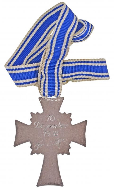 Description: Német 3. Birodalom 1938. "Német Anyasági Kereszt, ezüst fokozat" zománcozott, ezüstözött Br kitüntetés részleges szalaggal, tokban T:2