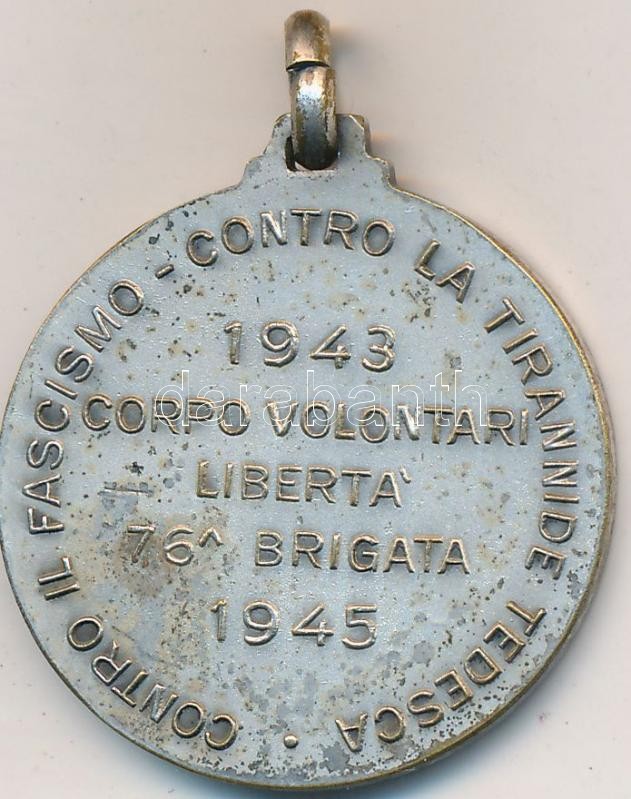 Olaszország 1945. "A fasizmus ellen - Németország zsarnoksága ellen - 1943 Önkéntes Felszabadító Testület 76. Brigádja" ezüstözött fém medál. Szign.: Affer (28mm) T:2