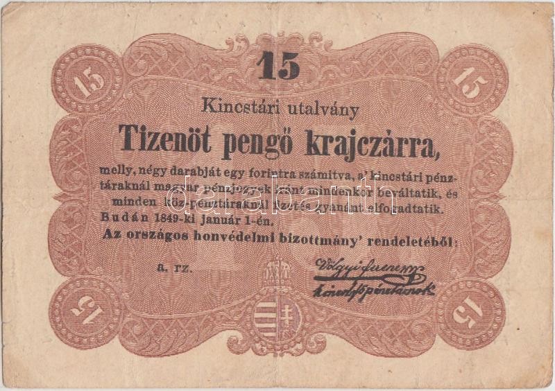 1848. 5Ft "Kossuth bankó" vörösesbarna + 1849. 15Kr "Kossuth bankó" T:III-,III