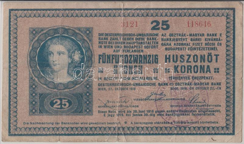 https://www.darabanth.com/en/227-Online-auction/227.0/Numismatics/Hungarian-Banknotes~600008/1918-25K-3121-3-5mm-vizszintesen-hullamos-hatlappal-Szolnok-Doboka-Varmegye--Lapospataka-~II1010503