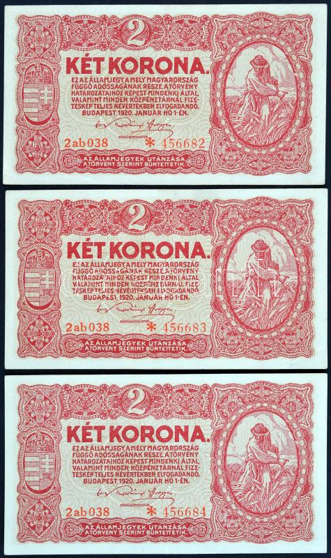 https://www.darabanth.com/en/227-Online-auction/227.0/Numismatics/Hungarian-Banknotes~600008/1920-2K-2ab-csillaggal-3x-egymas-utani-sorszammal-T-I-I-~II1010343