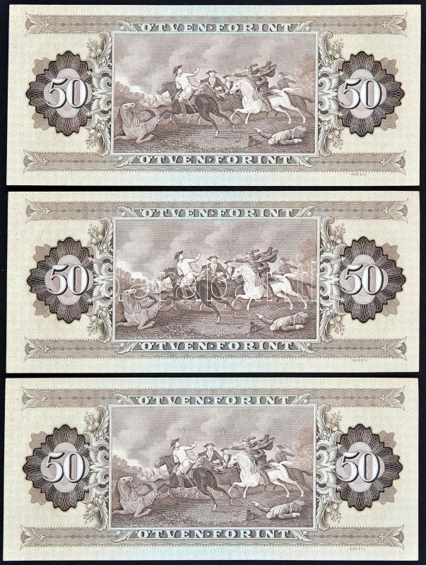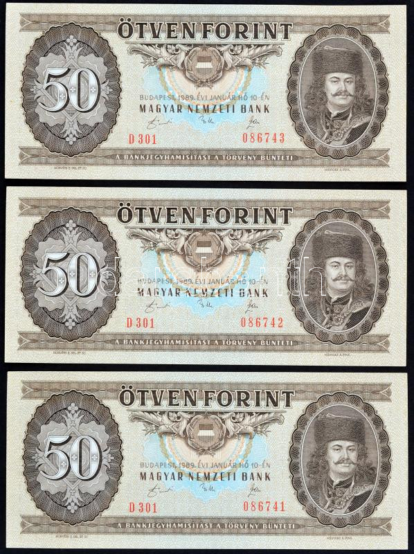 1989. 50Ft (3x) sorszámkövetők, nyomdai papírránccal T:I-