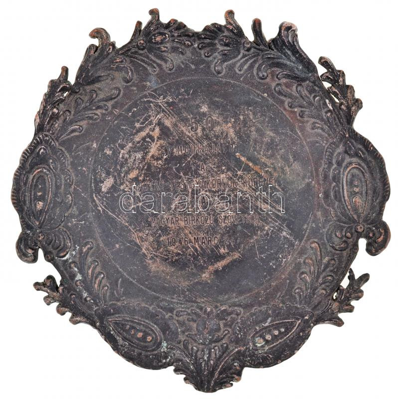 1946. "50 év munkájáért a Magyar Testgyakorlók Körének, a Magyar Birkózó Szövetség 1946. március 24." fém plakett (130mm) T:2-