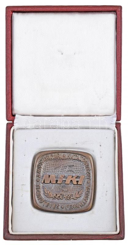 1965. "Magyar Műszeripari Kutatóintézet tizenöt éves fennállására 1950-65" Br emlékplakett tokban (59x59mm) T:2